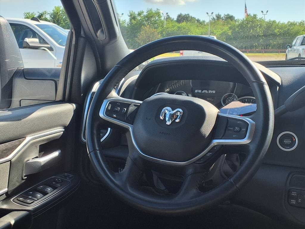 , Center Hub, Connectivity - US/Canada, Dual Glove Boxes, Exterior Mirrors Courtesy Lamps, Exterior Mirrors w/Heating Element, Exterior Mirrors w/Supplemental Signals, Foam Bottle Insert (Door Trim Panel), Footwell Courtesy Lamp, For Details, Visit DriveUconnect.com, For More Info, Call 800-643-2112, Forward & Reverse Utility Lights, Front Armrest w/Cupholders, Front Center Seat Cushion Storage, Front Fog Lamps, Front Seat Back Map Pockets, Global Telematics Box Module (TBM), Glove Box Lamp, Google Android Auto, GPS Antenna Input, Integrated Center Stack Radio, Integrated Voice Command w/Bluetooth, Leather Wrapped Steering Wheel, Locking Lower Glove Box, Manual Adjust 4-Way Front Passenger Seat, Mirror Running Lights, Power 2-Way Driver Lumbar Adjust, Power Adjust 8-Way Driver Seat, Power Adjust Mirrors, Power Adjustable Convex Aux Mirrors, Power Heated Fold Telescope Mirrors, Power Telescoping Mirrors, Rear 60/40 Folding Seat, Rear Dome w/On/Off Switch Lamp, Remote USB Port - Charge Only, Selectable Tire Fill Alert, SiriusXM Radio Service, SiriusXM Satellite Radio, Steering Wheel Mounted Audio Controls, Storage Tray, and Wheels: 18" x 8.0" Polished Aluminum), Quick Order Package 2HZ Big Horn, 3.73 Axle Ratio, 4-Wheel Disc Brakes, 6 Speakers, ABS brakes, Active Noise Control System, Air Conditioning, Brake assist, Bumpers: chrome, Center Stack Storage Drawer, Chrome Flat Cab-Length Side Steps, Cloth 40/20/40 Bench Seat, Compass, Delay-off headlights, Driver door bin, Dual front impact airbags, Dual front side impact airbags, Electronic Stability Control, Electronically Controlled Throttle, Emergency communication system: SiriusXM Guardian, Front anti-roll bar, Front Center Armrest w/Storage, Front License Plate Bracket, Front reading lights, Fully automatic headlights, Heated door mirrors, Illuminated entry, Low tire pressure warning, Manual Adjust 4-Way Driver Seat, Manufacturer's Statement of Origin, Occupant sensing airbag, Outside temperature display, Overhead airbag, Overhead console, Panic alarm, ParkView Rear Back-Up Camera, Passenger door bin, Passenger vanity mirror, Power door mirrors, Power steering, Power windows, Premium Cloth 40/20/40 Bench Seat (DISC), Radio data system, Radio: Uconnect 3 w/5" Display, Radio: Uconnect 5 W w/8.4" Display, Rear anti-roll bar, Rear Folding Seat, Rear seat center armrest, Rear step bumper, Remote keyless entry, Speed control, Tachometer, Tilt steering wheel, Tip Start, Tow Hooks, Traction control, Trip computer, Turn signal indicator mirrors, Variably intermittent wipers, Voltmeter, and Wheels: 18" x 8.0" Steel Chrome ClaD. Recent Arrival! Odometer is 3631 miles below market average!