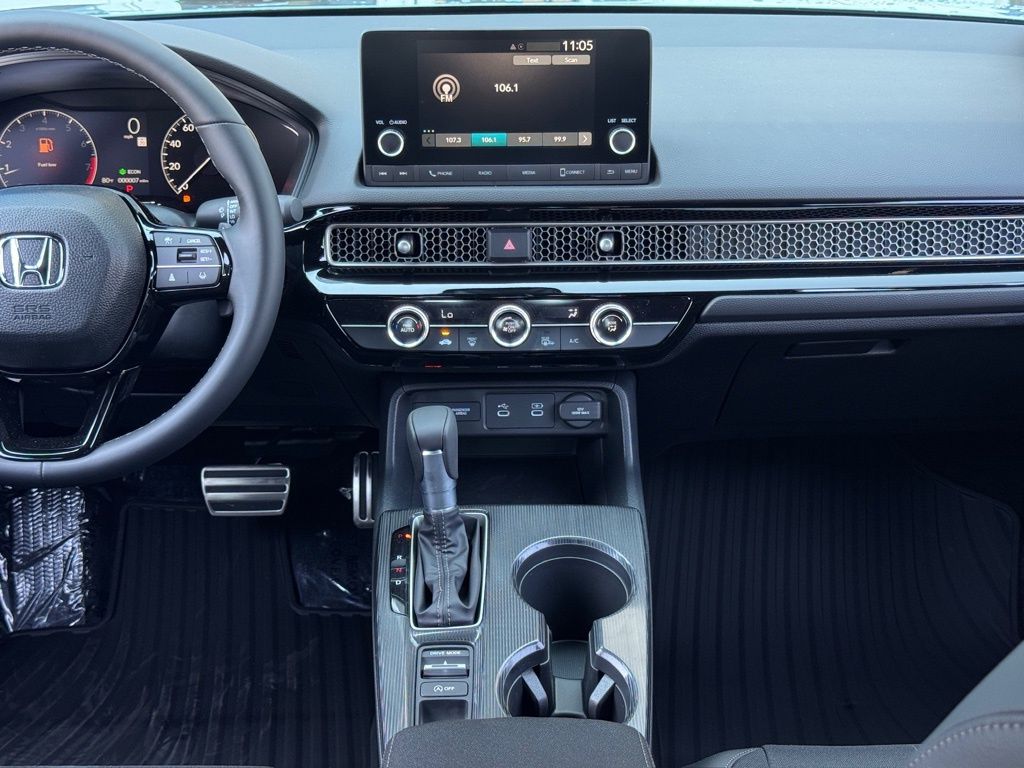 Black Artificial Leather, 4-Wheel Disc Brakes, 8 Speakers, ABS brakes, Adaptive Cruise Control: Adaptive Cruise Control (ACC) with Low-Speed Follow, Air Conditioning, Alloy wheels, AM/FM radio, Apple CarPlay/Android Auto, Auto High-beam Headlights, Automatic temperature control, Blind Spot Information (BSI) System warning, Brake assist, Bumpers: body-color, Cloth/Leatherette Seating Surfaces, Delay-off headlights, Driver door bin, Driver vanity mirror, Dual front impact airbags, Dual front side impact airbags, Electronic Stability Control, Emergency communication system: HondaLink, Exterior Parking Camera Rear, Four wheel independent suspension, Front anti-roll bar, Front Bucket Seats, Front Center Armrest, Front reading lights, Fully automatic headlights, Heated door mirrors, HondaLink, Illuminated entry, Knee airbag, Lane departure: Lane Keeping Assist System (LKAS) active, Leather Shift Knob, Low tire pressure warning, Occupant sensing airbag, Outside temperature display, Overhead airbag, Panic alarm, Passenger door bin, Passenger vanity mirror, Power door mirrors, Power steering, Power windows, Radio data system, Radio: 180-Watt Audio System, Rear anti-roll bar, Rear side impact airbag, Rear window defroster, Rear window wiper, Remote keyless entry, Security system, Speed control, Speed-sensing steering, Split folding rear seat, Steering wheel mounted audio controls, Tachometer, Telescoping steering wheel, Tilt steering wheel, Traction control, Trip computer, and Wheels: 18" Gloss Black Alloy.