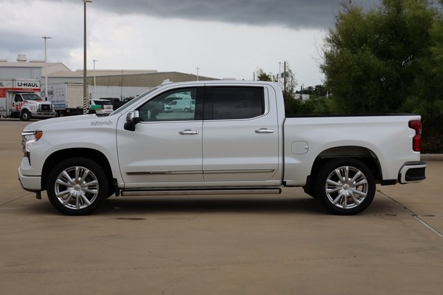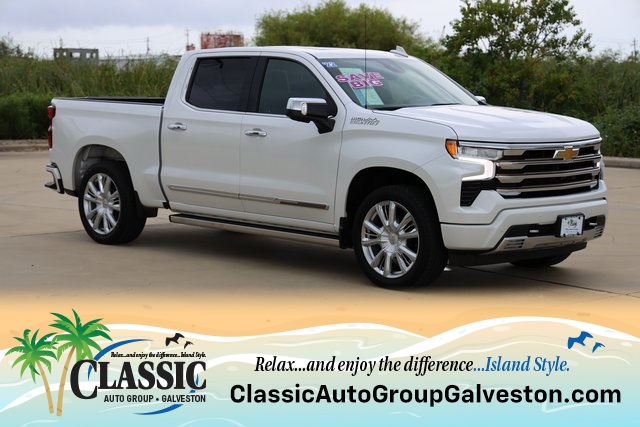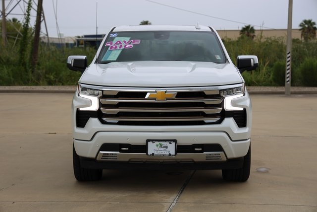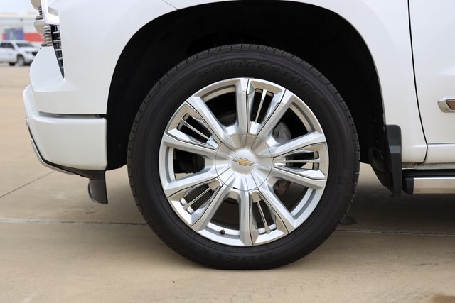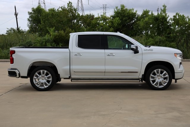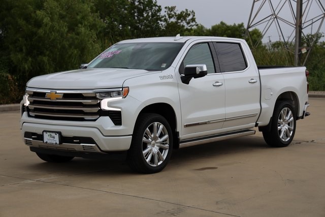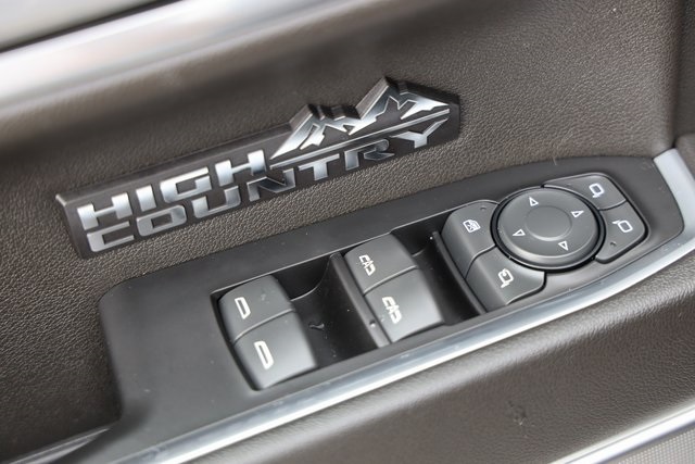 es the iconic Chevrolet bowtie emblem front and center. Chrome assist steps, a power-up-down tailgate, LED cargo area lighting, a Chevytec spray-on bedliner and several advanced safety features are all standard. Inside, heated and ventilated front bucket seats with perforated leather seating surfaces, heated rear outboard seats and a Bose sound system provide the comforts of home. A Chevrolet Infotainment Premium system with Navigation and an 8-inch Driver Information Center display bring the technology to another level. Plus, High Country offers 8 cameras that give you up to 15 unique views that come in handy when you need to get hitched up, back up, or just maneuver the road around you.