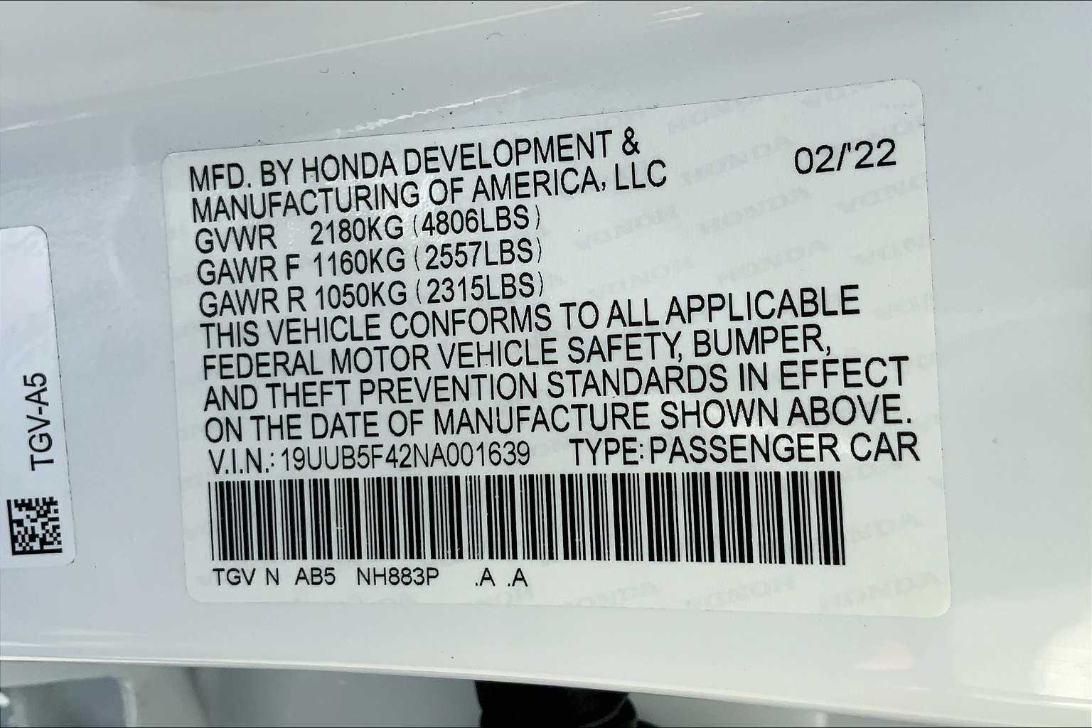 19UUB5F42NA001639Stock #
