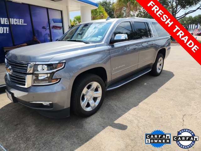 CARFAX One-Owner. Clean CARFAX. Satin Steel Metallic 2019 Chevrolet Suburban Premier 4WD 6-Speed Automatic Electronic with Overdrive EcoTec3 5.3L V8 LOCAL TRADE, CARFAX 1 OWNER, CLEAN CARFAX, NON SMOKER, 4WD, NAVIGATION, KEYLESS ENTRY, REMOTE START, APPLE CARPLAY, ANDROID AUTO, SIRIUS XM RADIO, AM/FM/HD RADIO, BLUETOOTH HANDS FREE CALLING, FRONT USB CHARGING PORTS, MP3 IPOD COMPATIBLE, AUTO HEADLIGHTS, DAYTIME RUNNING LIGHTS, BLIND SPOT WARNING SYSTEM, REAR TRAFFIC ALERT, LANE DEPARTURE WARNING